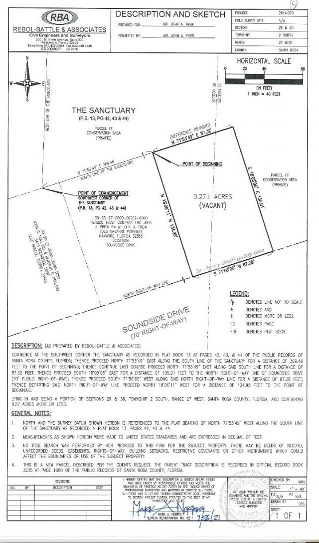 Discover the perfect canvas for your future with this stunning piece of land, offering beautiful water views and unbeatable tranquility. Nestled in a picturesque setting, this prime .26-acre lot provides you with the unique opportunity to design and create the home of your dreams, all while being surrounded by nature's beauty. Enjoy mesmerizing sunrises and sunsets right from your future porch or deck. Less than two minutes from launching your boat in the Santa Rosa Sound and just minutes from the Beautiful Gulf of Mexico and Pensacola Beaches.
