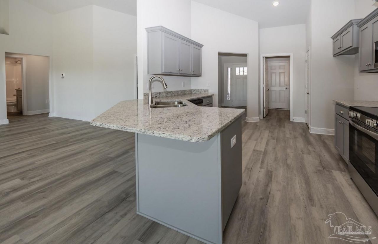 Welcome to this beautifully maintained single-family home offering 1920 square feet of contemporary living space. Featuring 4 bedrooms and 2 bathrooms, this residence boasts high ceilings and luxury vinyl plank flooring throughout, creating an open and inviting atmosphere. The gourmet kitchen is a chef's delight, equipped with sleek quartz countertops and premium stainless steel appliances, combining style and functionality for your culinary endeavors. Stainless steel appliances are highly sought after by homebuyers for their modern aesthetic and durability. Step outside to the covered patio, perfect for entertaining guests or enjoying quiet...read more